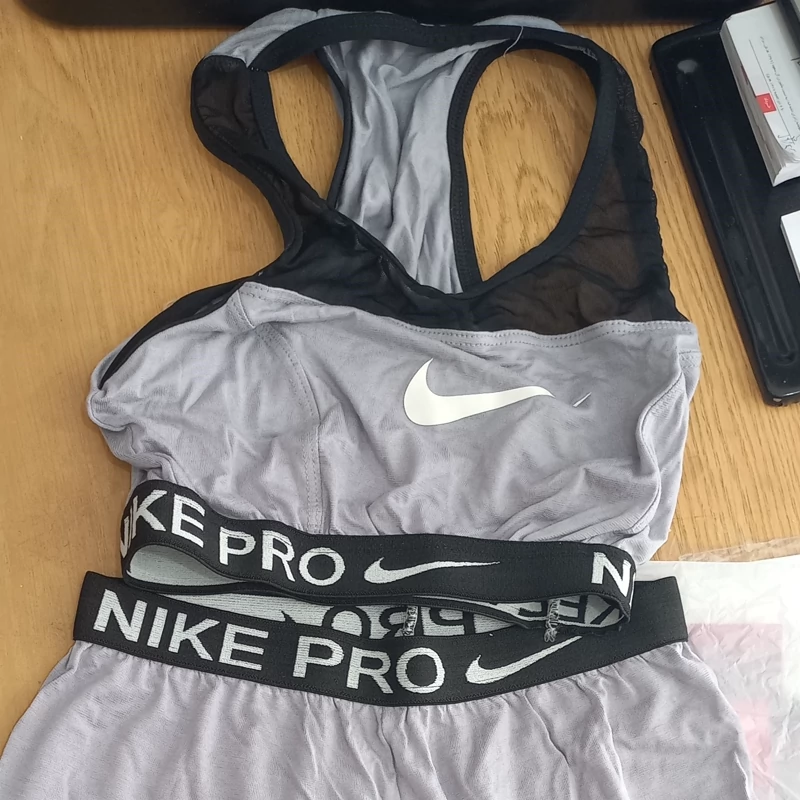 تاپ و شلوارک ورزشی دخترانه طرح نایک طوسی